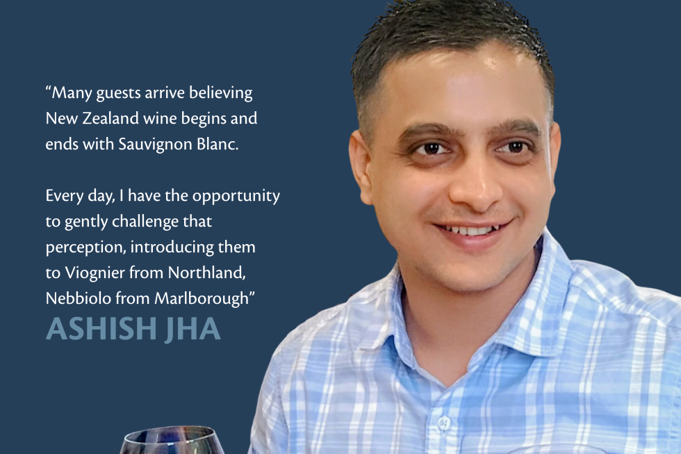 Assistant Restaurant Manager at Rosewood Kauri Cliffs and ranked #38 in the Top 100 Sommeliers of New Zealand 2025, Ashish Jha reflects on his path from a dry state in India to the global wine stage.